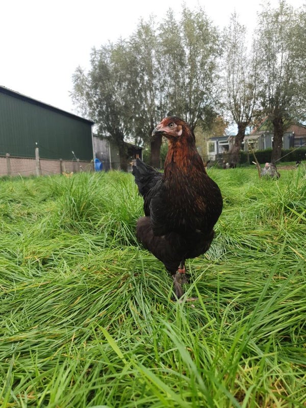 De Verrips Marans, een fascinerende toevoeging aan uw kippenbestand, staat bekend om haar diepgekleurde eieren en voegt een intrigerend element toe aan uw pluimvee-ervaring. Deze Franse schoonheid, gekenmerkt door haar donkere veren en karakteristieke uitstraling, levert eieren met een opvallend rijke, chocoladebruine tint.