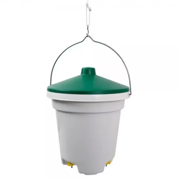 Met deze drinkemmer met drinknippels heeft al je pluimvee altijd toegang tot schoon en vers drinkwater. Doordat de emmer opgehangen wordt en een deksel heeft is het vrijwel onmogelijk om hier ontlasting of andere onzuiverheden in te krijgen.