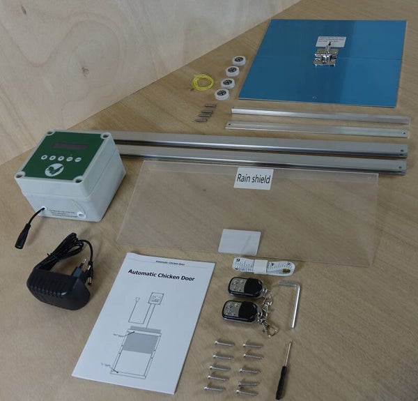 Bescherm uw kippen 's nachts tegen roofdieren en ongedierte met deze automatische kippendeur. Deurtje wordt optioneel meegeleverd. Kan op tijd en lichtsterkte ingesteld worden. Montage mogelijk in overleg.