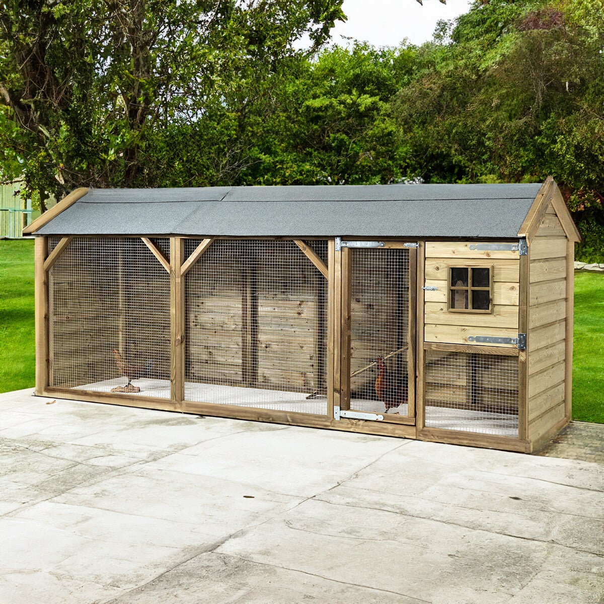 Het kippenhok heeft een totale buitenafmeting van 363 x 95 x 148 centimeter
