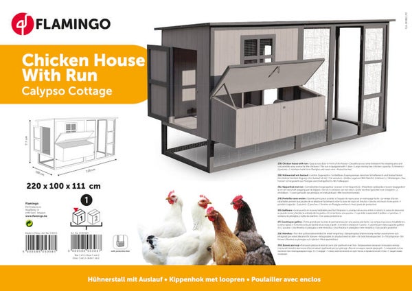 FLGO Kippenhok Calypso Cottage Grijs 222.2cm L x 102cm B x 111.5cm H