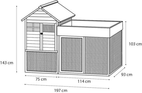 - Het hok heeft een bloem-/kruidenbak met een kunststof bodembescherming