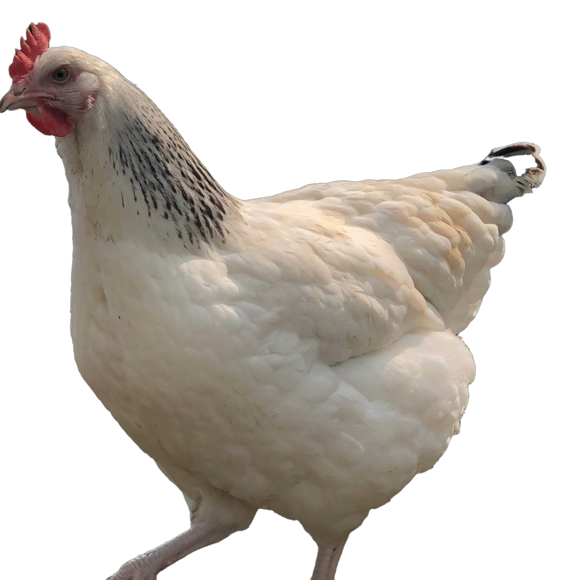 De Verrips Sussex, een eveneens kalme kip, is een veelzijdig ras dat verkrijgbaar is in verschillende kleurvarianten. In ons assortiment hebben wij de wit en zwartcolombia kleurslag. De Sussex kip staat bekend om haar rustige karakter en biedt een esthetische diversiteit aan uw kippenren.