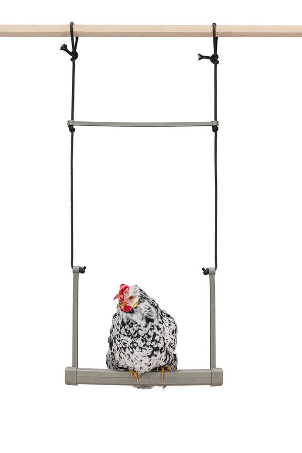 Kippenschommel voor in de stal of in de ren. Helpt verveling bij kippen te voorkomen.